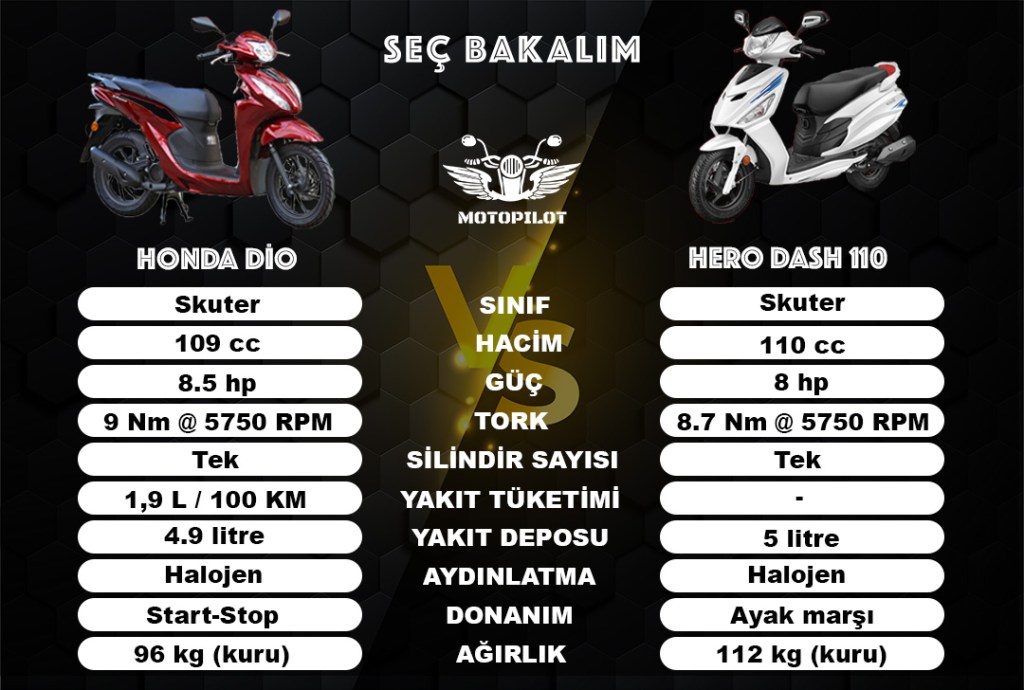 Honda Dio ile yakın rakibi Hero Dash karşılaştırması ile beraberiz.