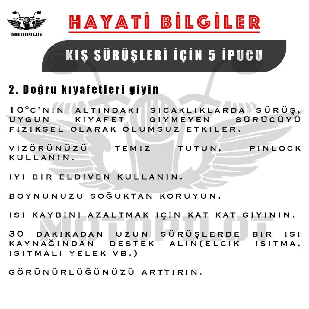 KIŞ SÜRÜŞÜ – HAYATİ BİLGİLER Yazan:motopilotofficial3 Şubat 20233 Şubat 2023Yazı kategorisi Bakım, hayati bilgiler, MotosikletEtiketler:Kış, Kış Sürüşü, Motosiklet, Soğuk Havalarda Motosiklet, Şartlarında Motosiklet KIŞ SÜRÜŞLERİNDE GÖZ ÖNÜNDE BULUNDURMANIZ GEREKEN ÖNEMLİ NOTLARI PAYLAŞMAK İSTEDİM. Bunu paylaş: X'te paylaşmak için tıklayın (Yeni pencerede açılır) X Facebook'ta paylaşmak için tıklayın (Yeni pencerede açılır) Facebook Beğen Yükleniyor... İlgili